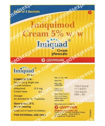 Imiquad Cream contains active ingredient imiquimod and is used to treat precancerous skin lesions, known as actinic keratosis and genital warts, known as Human Papilloma Virus (HPV). It stimulates human immune system to fight with the virus.