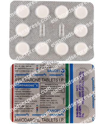 Cordarone belongs to the antiarrhythmics. It is used to correct abnormal rhythms of the heart, to treat potentially life-threatening types of abnormal heart rhythms (such as persistent ventricular fibrillation/tachycardia). It helps by making the heart beat more regularly and it works by blocking certain electrical signals in the heart that can cause an irregular heartbeat. The effects of this medication may be noted as early as three days after starting treatment, but it is usually one to three weeks before beneficial effects are seen.